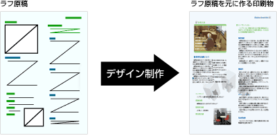 色や写真の大きさ、文章などお客様のご要望事項に関しては、可能な限りラフ原稿に指示を記入しておくと、よりお客様のイメージに近い仕上がりとなります。ラフ原稿(見本となる印刷物)に基づき入稿内容一覧とお客様のマシン環境、使用アプリケーションのバージョン名と原稿作成指示などを入力したテキストデータを必ずお付け下さい。(納品時に制作データをお客様にお返しする際に必要です。マシン環境と 使用アプリケーションバージョン等無い場合は弊社で制作したアプリケーションバージョンによる保存形式にてお返しいたします。)