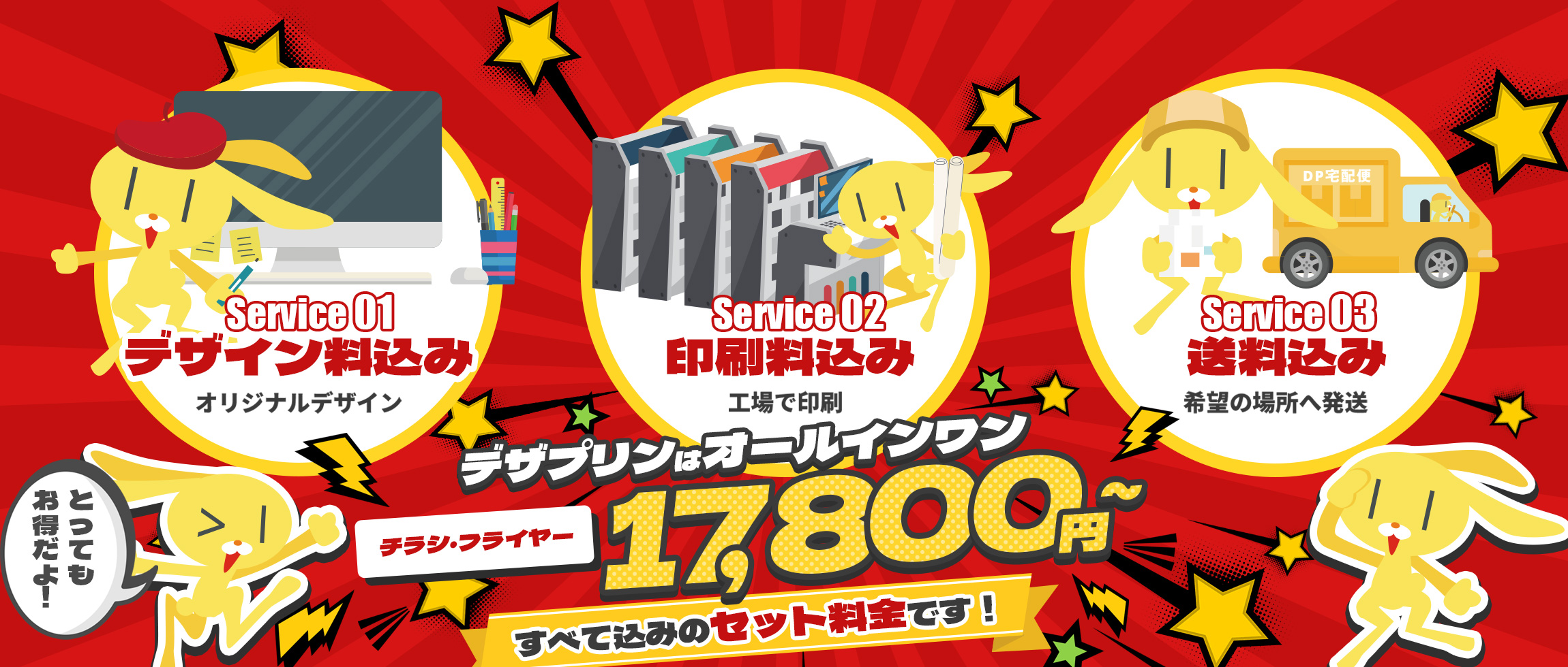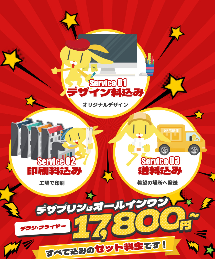 すべて、デザイン料・印刷料・送料込みのセット料金!低コストで高品質なサービスをご提供します。