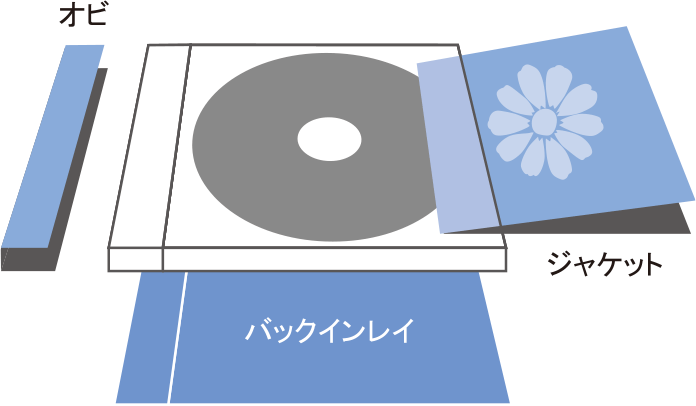 ジャケット(歌詞カード)は両面印刷です。バックインレイ(裏カード)とキャップ(帯)は片面4色印刷です。
