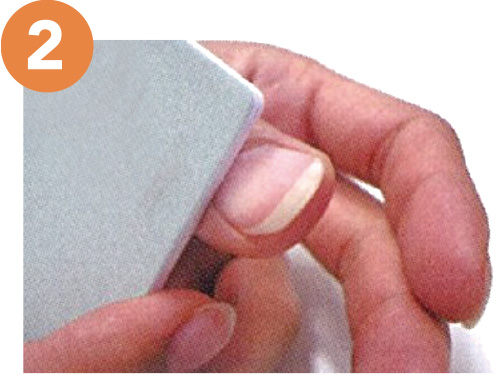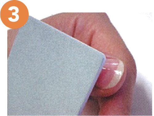次につめ磨きの表面(プリント面)で、爪の表面を(1本あたり5秒程度)軽く磨きます。