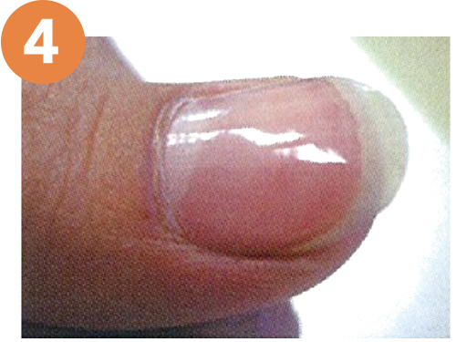 つめ磨きの裏面で爪の表面を整える様に(1本あたり5秒程度)軽く擦ります。