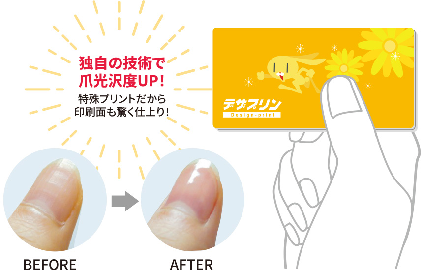 1プリントの作業上、爪磨き面の回りに約3mm程の余白が必要となる場合がございます。その場合のプリント面は左右74mm天地34mm以内とさせて頂きます。