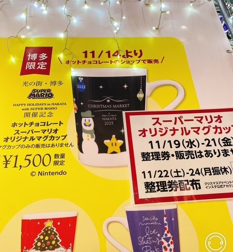 クリスマスマーケットといえば、毎年ホットチョコレートを注文するともらえるマグカップが有名なのですが、今年はそちらもマリオバージョン✨