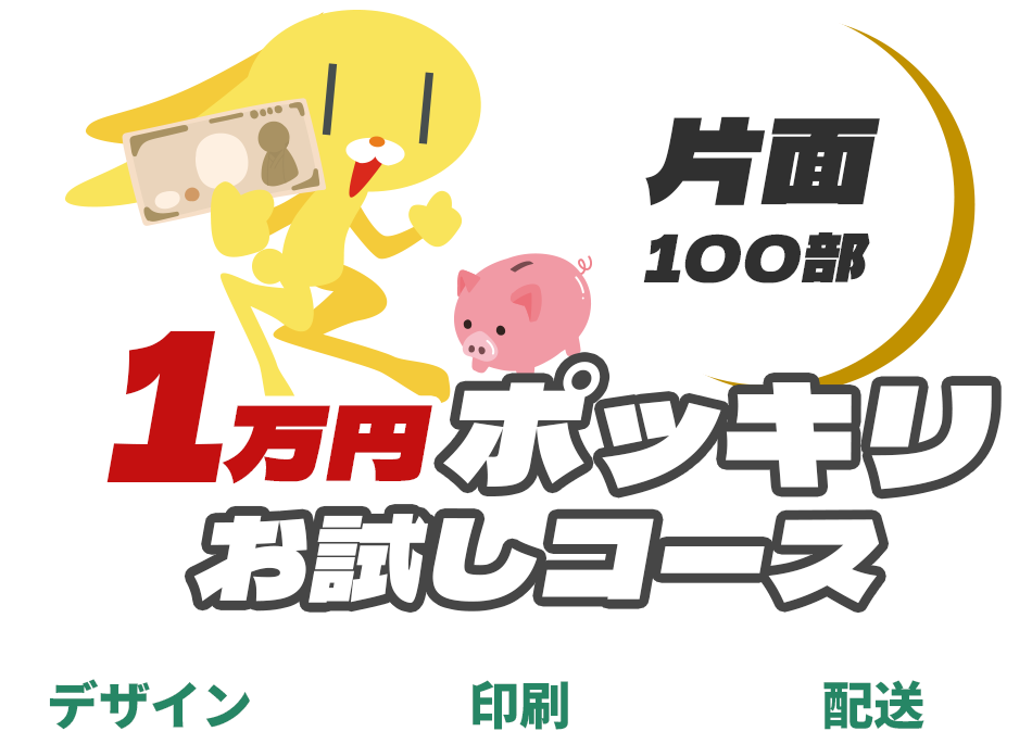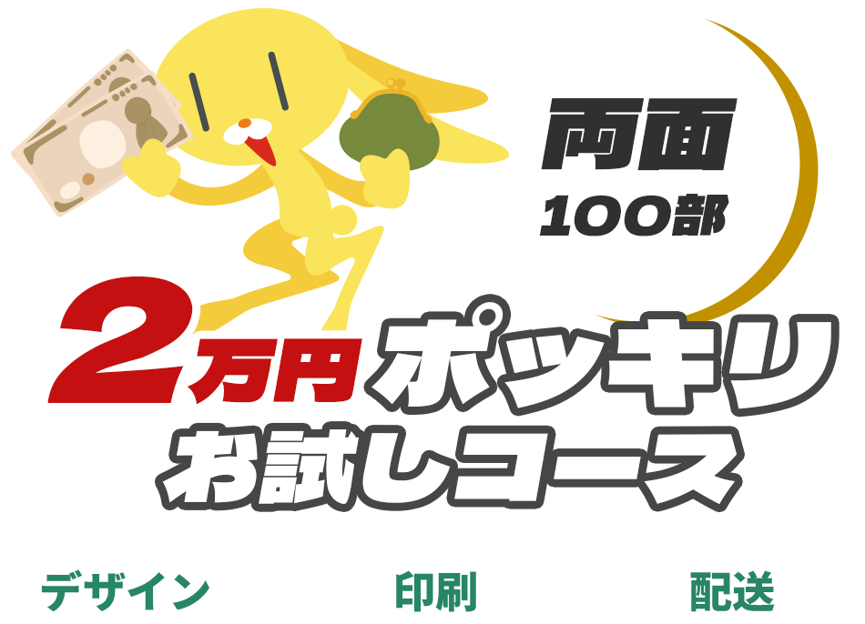 - 本コースではサービスの流れ及び印刷物仕上がり等をご理解いただく為のコースとなりますので校了後の修正はできかねます。再度修正して印刷の場合は弊社【通常コース】となります。